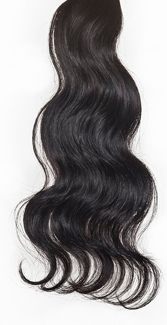 Body Wave hair extensions may be worn wavy, straightened, or curled (as shown) for additional body.